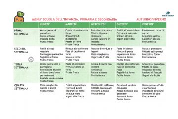 Menu' mensa scolastica autunno -inverno 2025-2026