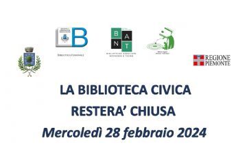 Chiusura Biblioteca comunale mercoledì 28 febbraio 2024