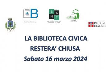 Chiusura Biblioteca comunale sabato 16 marzo 2024