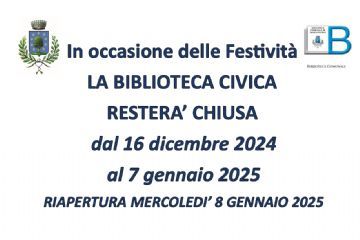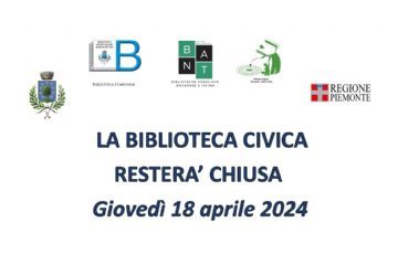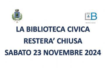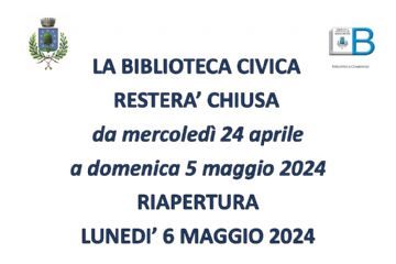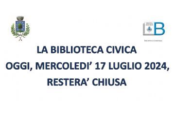 Si avvisa che oggi la biblioteca comunale resterà chiusa