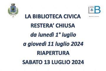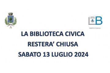 Chiusura Biblioteca Comunale sabato 13 luglio 2024