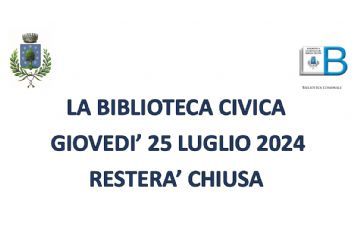 Si comunica chiusura biblioteca per giovedì 25 luglio 2024