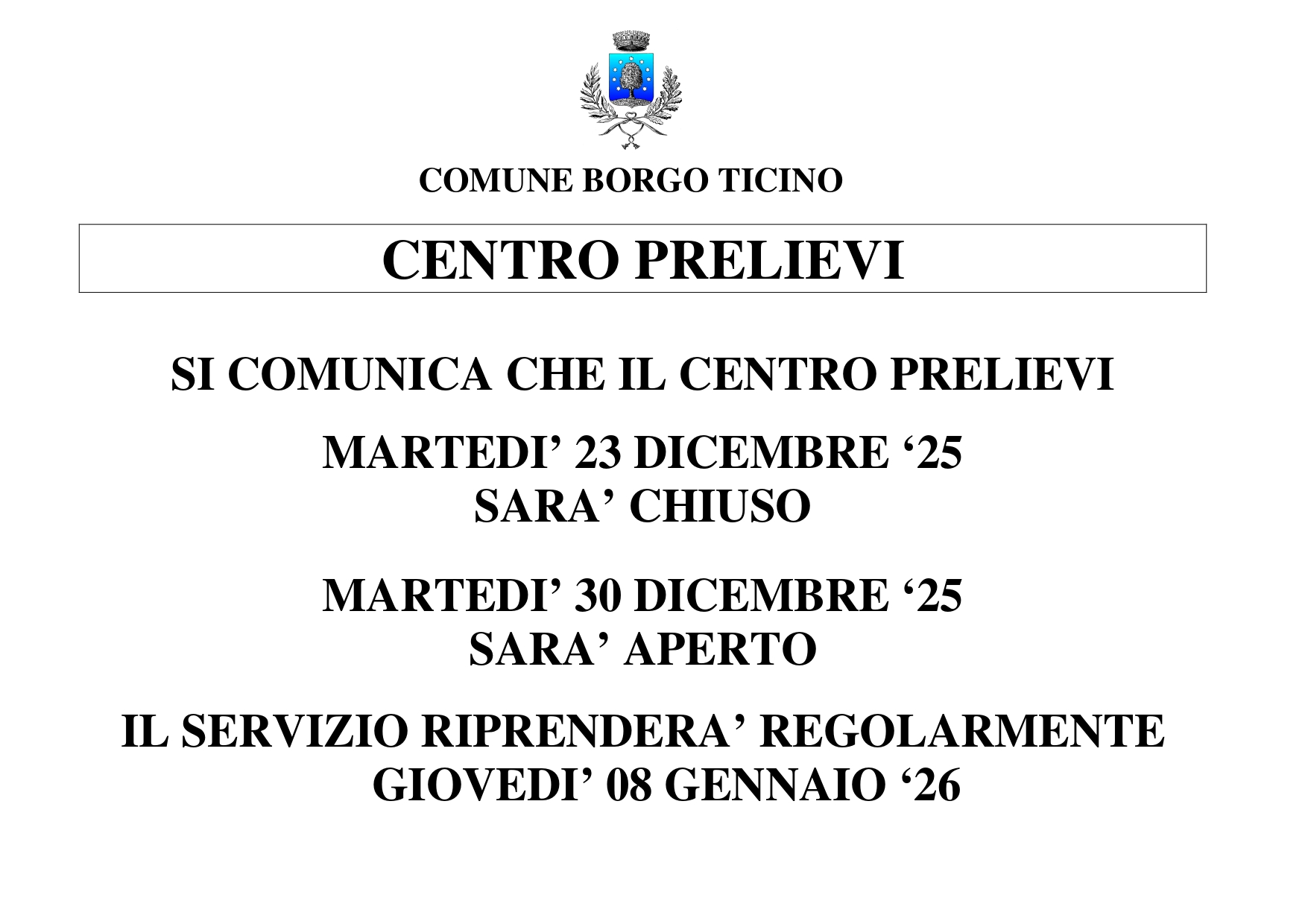 Centro Prelievi - Avviso