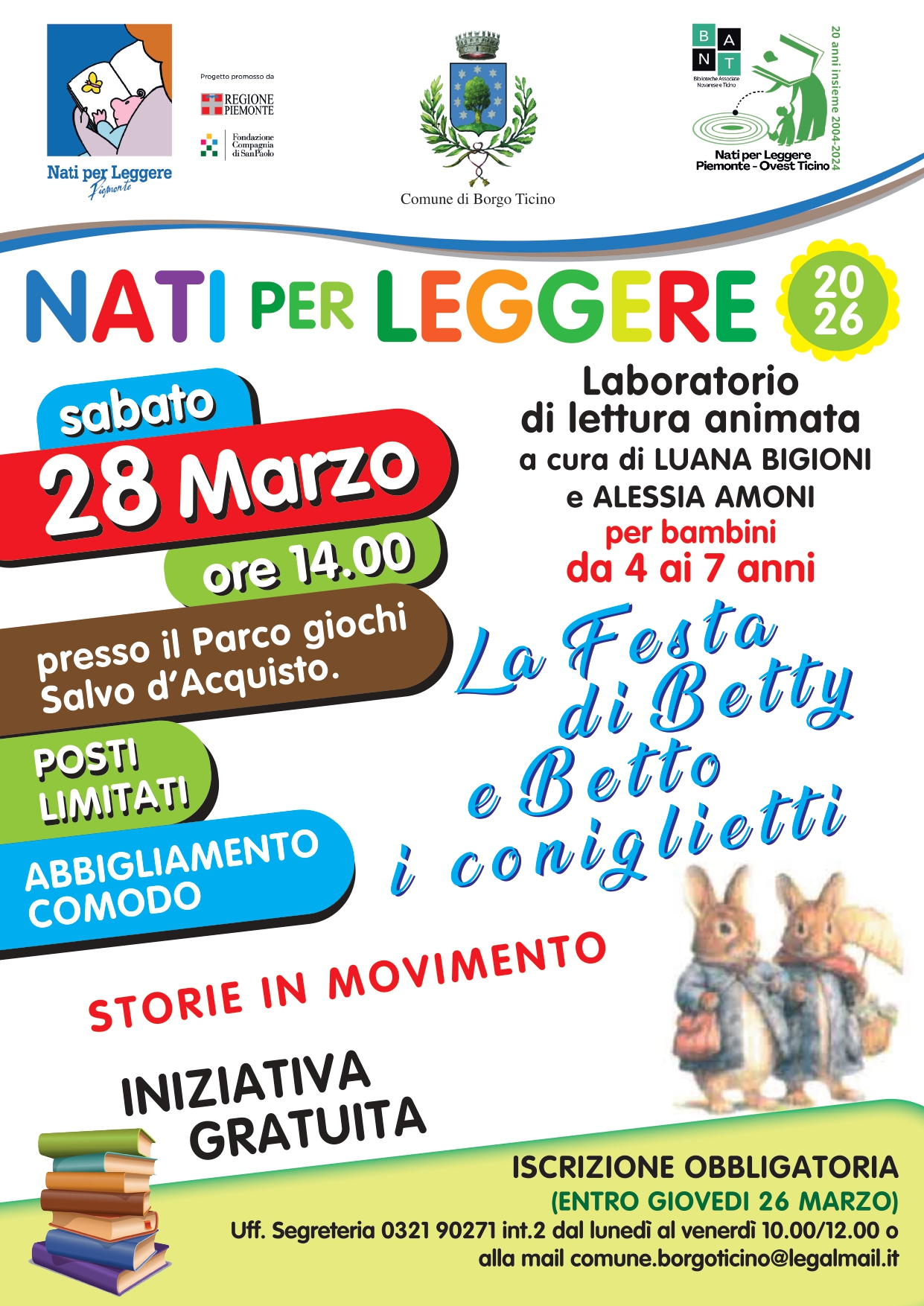 Nati Per Leggere torna con l'appuntamento al parco giochi comunale: SABATO 28 marzo 2026, alle ore 14.00