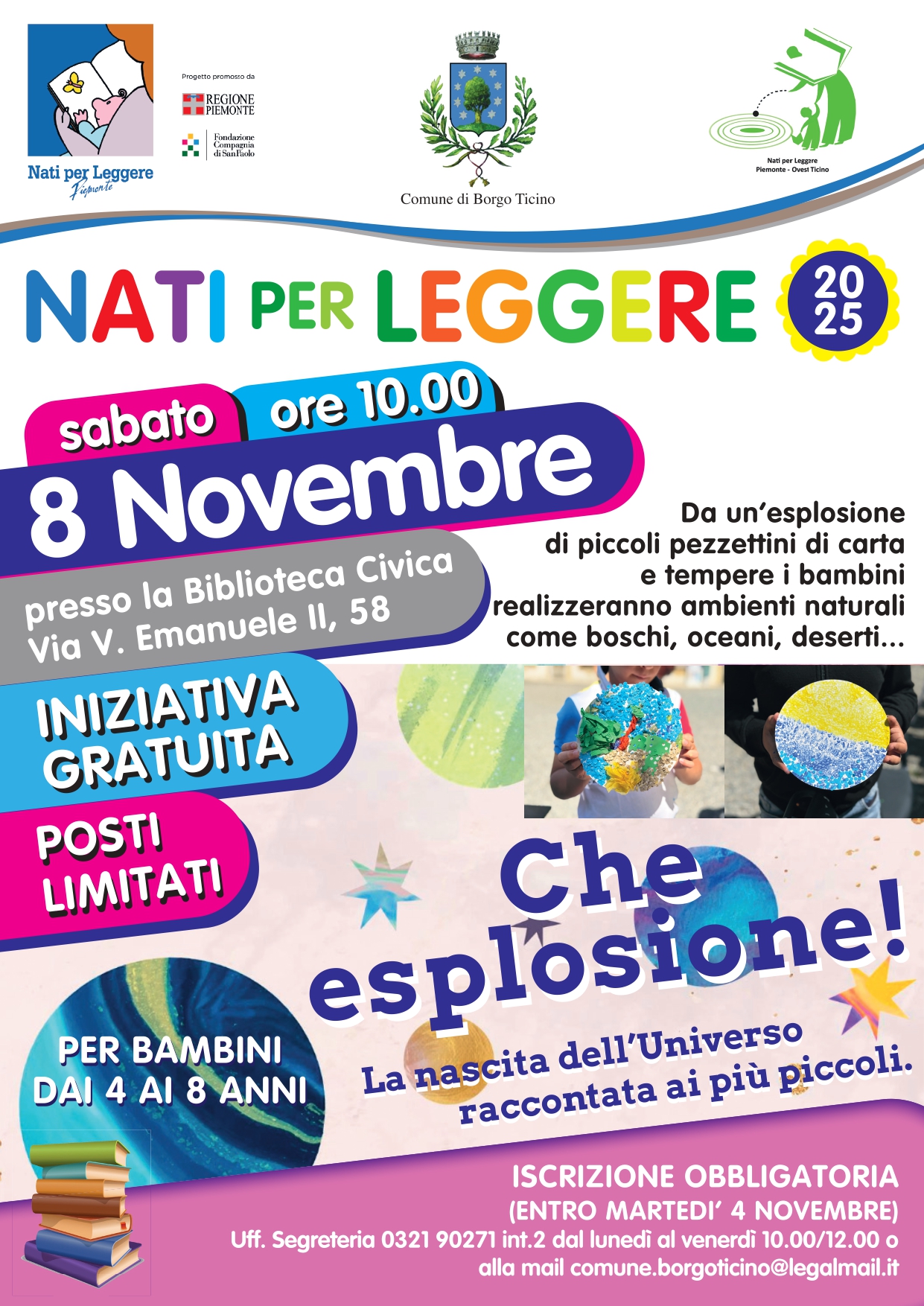 Nati Per Leggere torna con l'appuntamento presso la Biblioteca Civica di Borgo Ticino: SABATO 08 novembre, alle ore 10.00