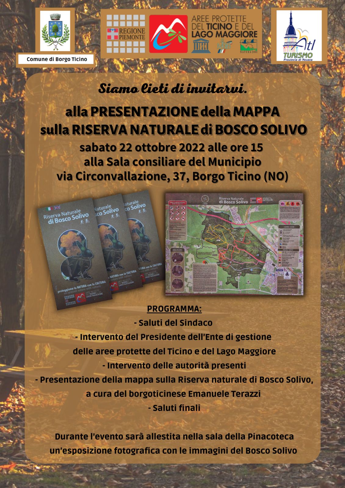Vi invitiamo a partecipare alla PRESENTAZIONE della MAPPA della RISERVA NATURALE di BOSCO SOLIVO, sabato 22 ottobre 2022, alle ore 15, alla sala consiliare del Municipio.