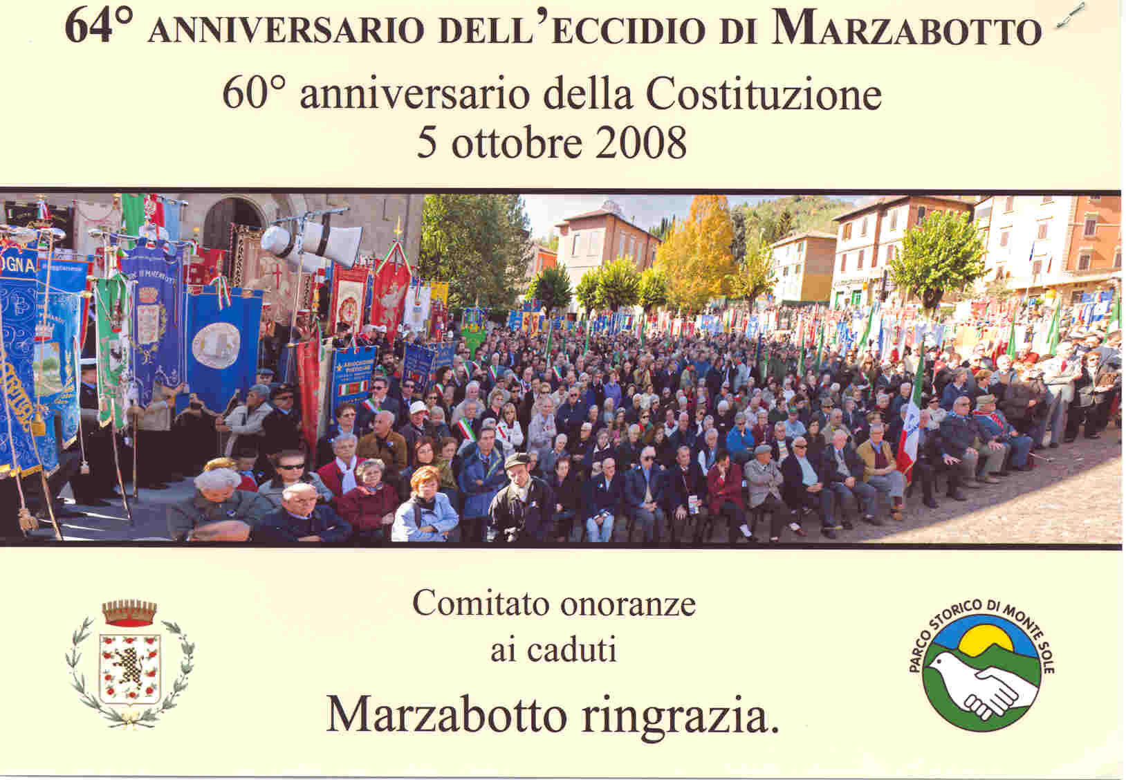 Domenica 5 ottobre, a Marzabotto è stato ricordato il 64° anniversario dell'eccidio del 1944, insieme al 60° anniversario della Costituzione italiana. Un numeroso gruppo di borgoticinesi e di sestesi, comprese le rappresentanze delle rispettive amministrazioni comunali (assessori Bellini e Buschini, consigliere Folino; presidente dell’Associazione combattenti e reduci Veneruso; assessore Pedretti di Sesto Calende), è stato presente alla commemorazione: la giornata è stata voluta come testimonianza di solidarietà, momento di ricordo e anche impegno a creare, attraverso la convivenza pacifica e civile, un'Italia che non debba più conoscere ingiustizie e stragi. E’ stata anche un’occasione per ricambiare numerosi la partecipazione dei rappresentanti del Comune di Marazabotto alla commemorazione dei martiri del 13 agosto.